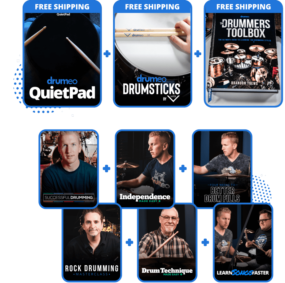 Join today and you’ll get one free bonus for every year Drumeo has been around -- that’s 9 drumming goodies to help you crush your goals behind the kit!